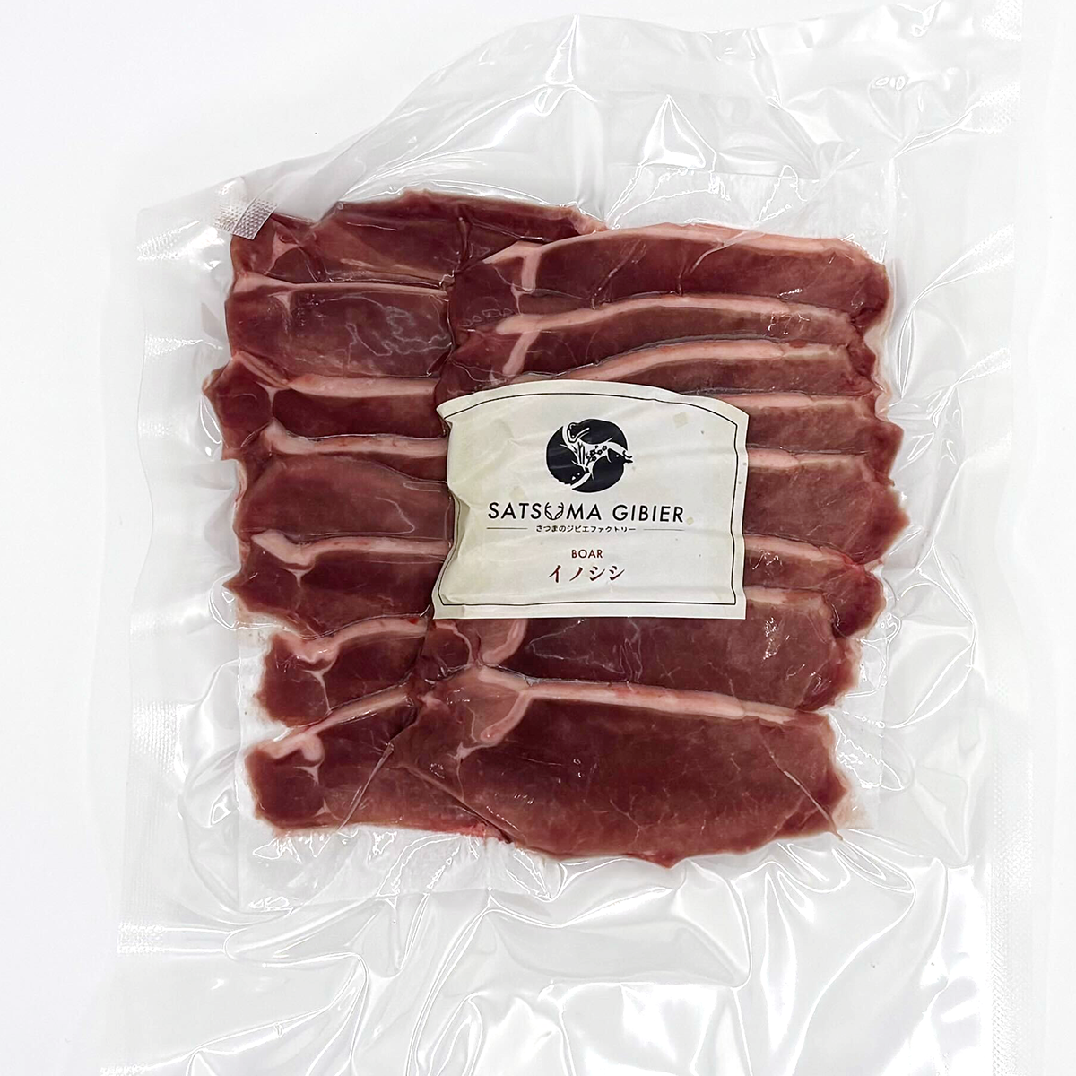 鹿児島県さつま町産の猪肉を使用したローススライスです。夏の猪ならではの引き締まった赤身が特長で、やわらかくクセも少ないため、猪肉が初めての方にもおすすめです。さっぱりとした味わいの中に、肉本来のしっかりとした旨みをお楽しみいただけます。※ジビエは個体差があり、脂の乗り方や肉質については個体差がありますので予めご了承ください。