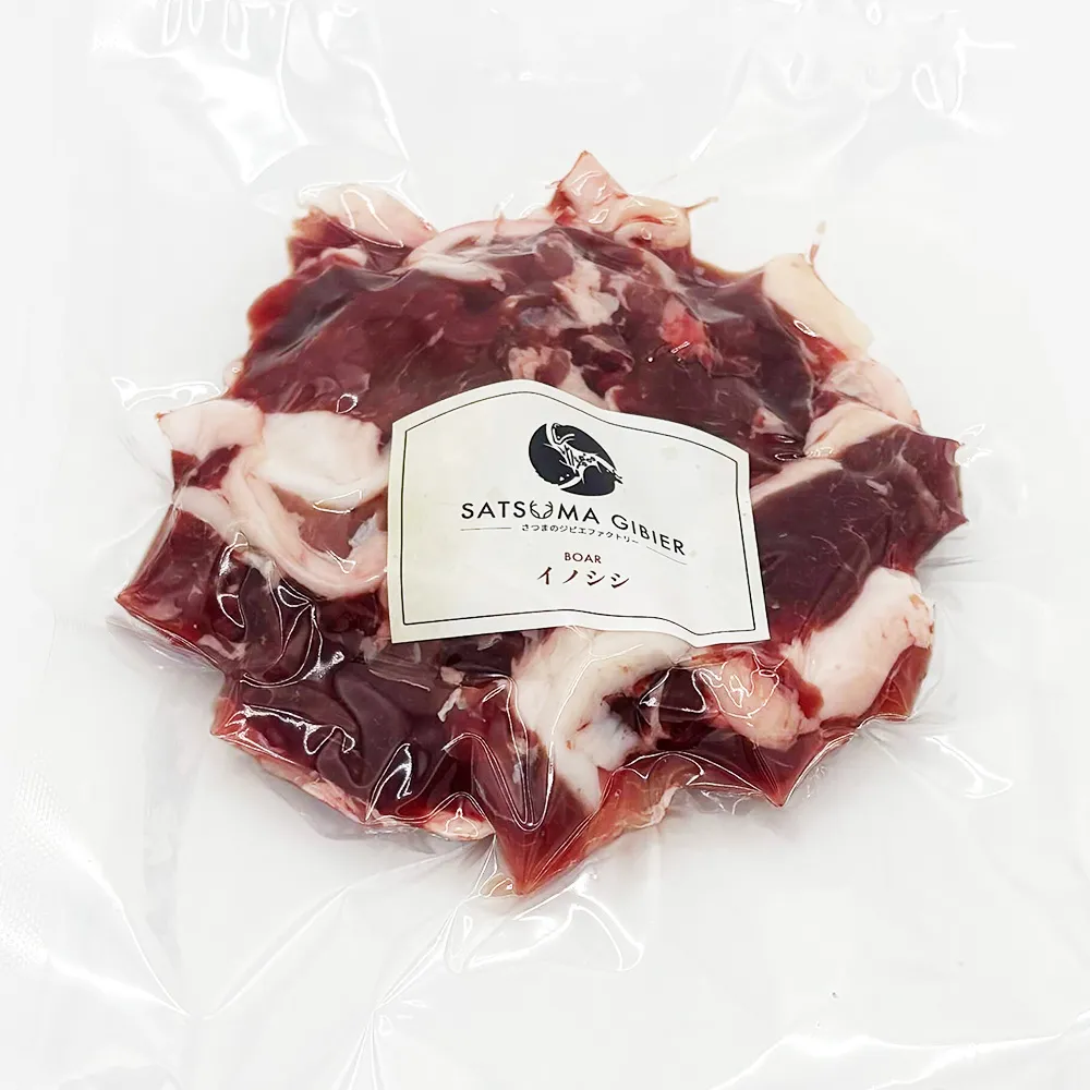 鹿児島県産の猪肉を使用した、お得な切り落とし肉です。ロース、モモ、バラ、カタなど様々な部位の切り落としをたっぷり集めました。形は不揃いですが、その分お買い得。クセが少なく食べやすいので、猪肉が初めての方にもおすすめです。赤身の旨みや脂の甘みなど、猪肉本来の様々な味わいをお楽しみいただけます。炒め物や煮込み料理、猪汁など、毎日の食卓で気軽にお使いください。