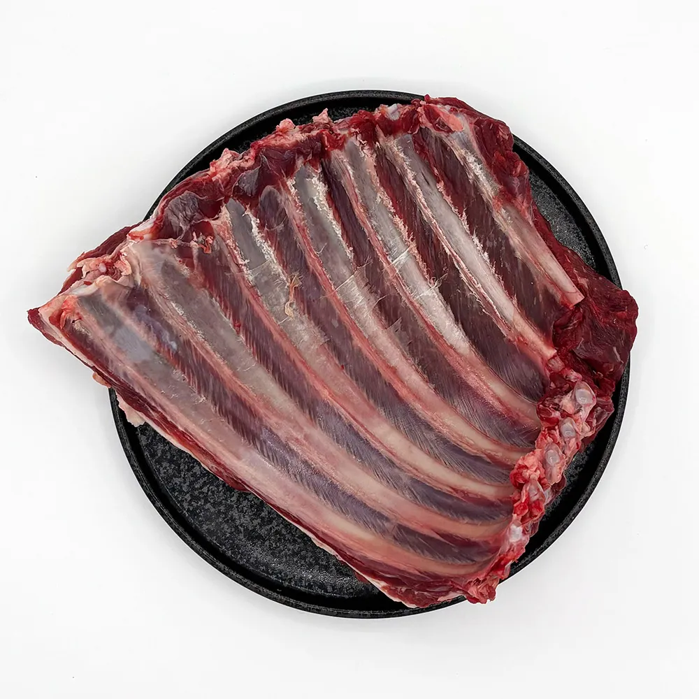 鹿の骨付きバラは、鹿肉の中でも特に風味豊かで、骨から出る旨みが肉全体に深みを与える贅沢な部位です。適度な赤身と脂のバランスが良く、ジューシーでありながらも鹿肉特有の繊細な味わいをお楽しみいただけます。骨付きで調理することで、さらに豊かな香りとコクが引き出されます。