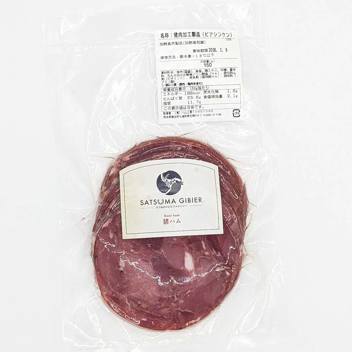 | 原材料 | 猪肉(さつま町産)、食塩、鶏エキス、砂糖、香辛料、たん白質加水分解物/リン酸塩(Na)、酸化防止剤(ビタミンC)、発色剤(亜硝酸Na)、調味料(アミノ酸)、(一部に小麦・豚肉・鶏肉を含む) |