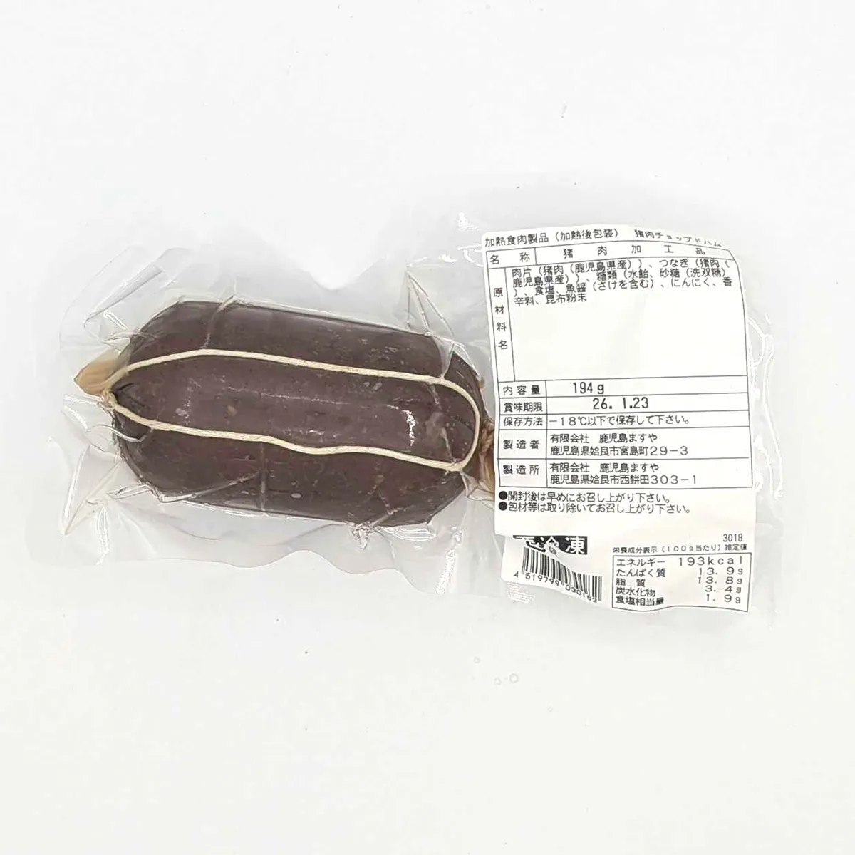 | 原材料 | 猪肉(さつま町産)、つなぎ(猪肉(さつま町産))、糖類(水飴、砂糖、(洗双糖))、食塩、魚醤(さけを含む)、にんにく、香辛料、昆布粉末 |