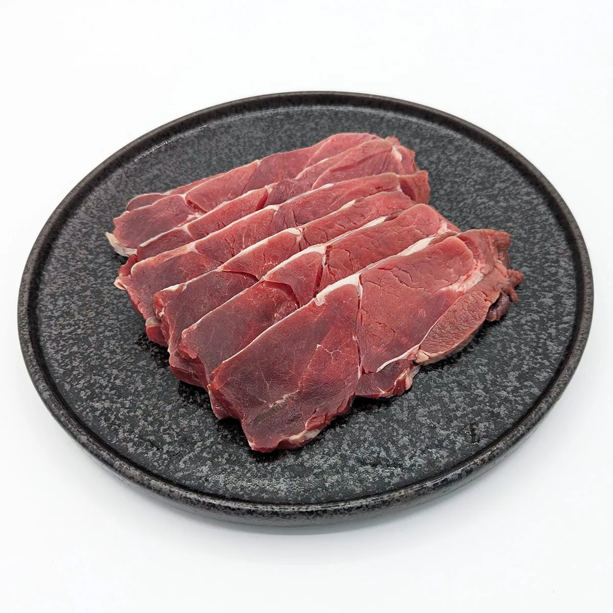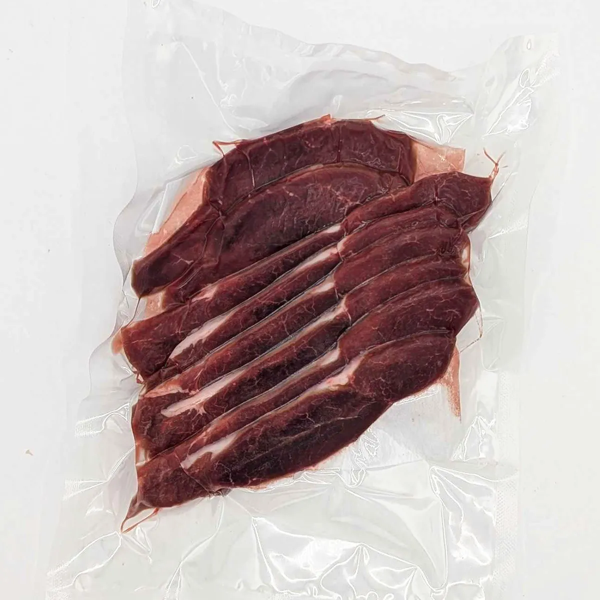 野生の豊かな風味が凝縮されたカタ肉を食べやすく厚めにスライスしました。
