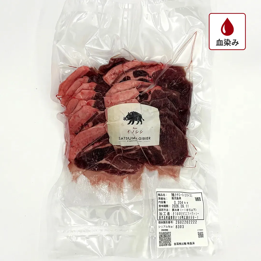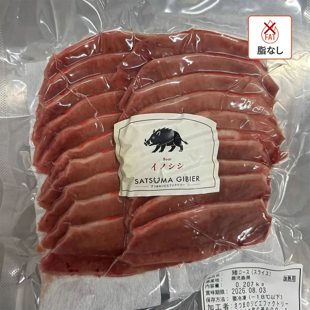 鹿児島県産の猪肉を使用したロース(または肩ロース)スライスです。